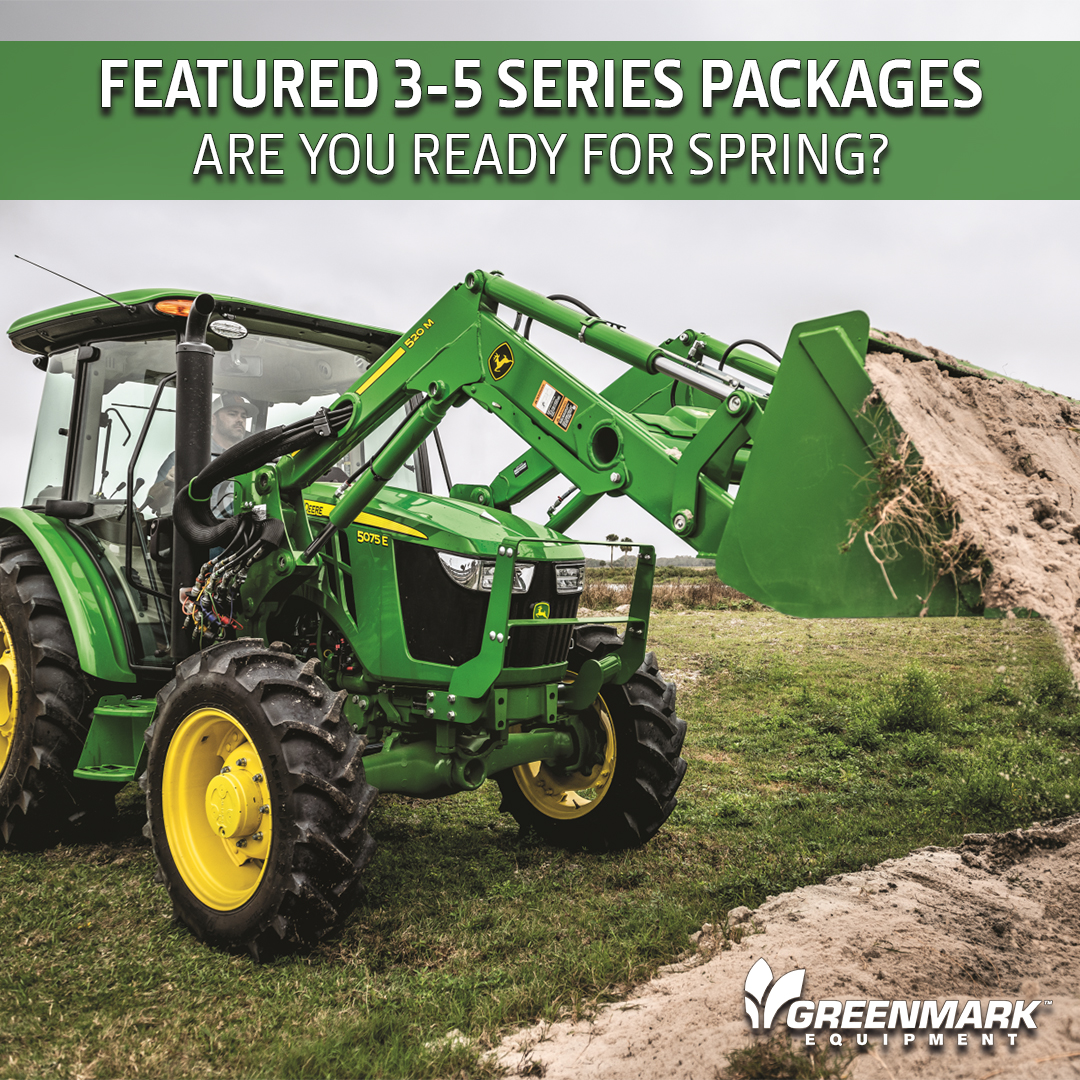 While supplies last. $279 per month based on 1.9% APR for 84 months financing with $5,500 down. $433 per month based on 1.9% APR for 84 months financing with $9,000 down. $699 per month based on 1.9% APR for 84 months financing with $14,000 down. Sales tax not included in payment. Financing offer subject to approval by John Deere Financial. Must be sold within GreenMark AOR. Some pictured attachments may not be included in offer. Offer ends April 30, 2026.